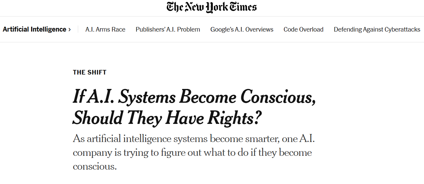 I think a lot about this 2025 New York Times discussion between Casey Newton and Kevin Roose about AI. In it, they regularly attribute human attributes to LLMs in a way that shows a very deep misunderstanding of how AI software works (again, despite being paid very well to professionally cover the sector).