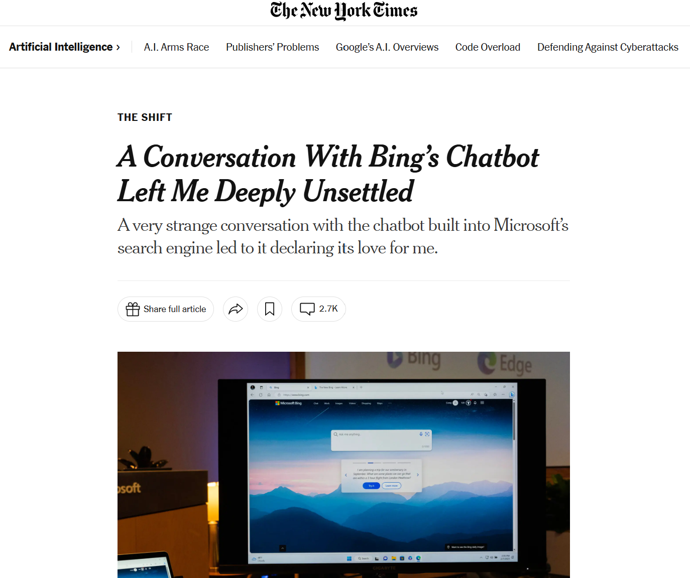 There's no faster way for a tech journalist to loudly demonstrate they don't know how this technology works than by attributing human intentions and motivations to software. There is a lot of terrible journalism on AI obsessed with this sort of weird anthropomorphism: