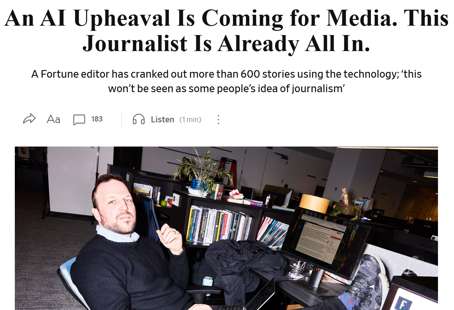 Every so often I'll see interesting flashpoints on this subject, like this recent Wall Street Journal article about how Fortune, already a cornerstone of lazy "CEO said a thing!" journalism, is going full steam ahead on replacing what used to pass as human insight with high-volume automated cack. Often without telling readers.