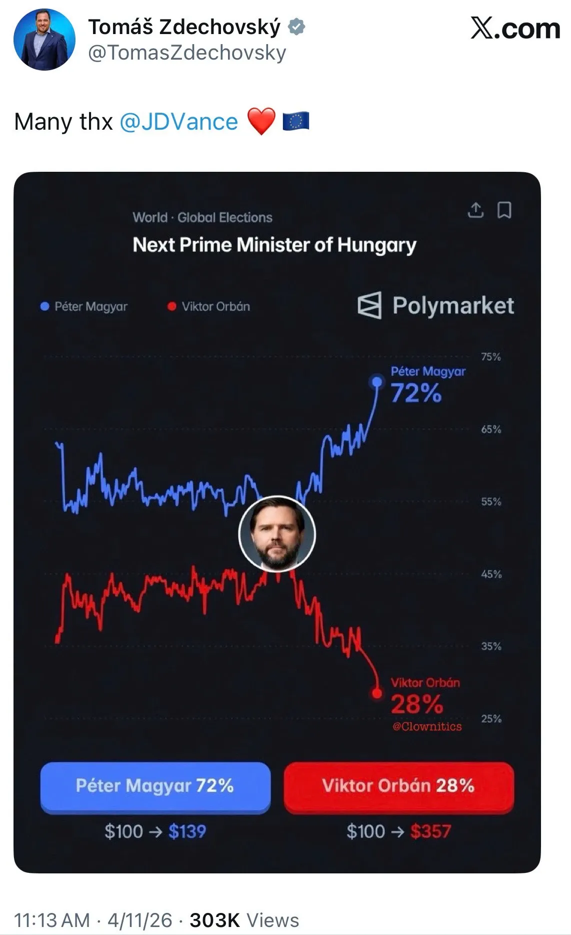 For example, Orban and the MAGA dipshit coalition genuinely believed that a last minute Budapest campaign appearance by U.S. Vice President J.D. Vance (on pace to be the least popular VP in American history) would help boost Orban's chances (it did the exact opposite).