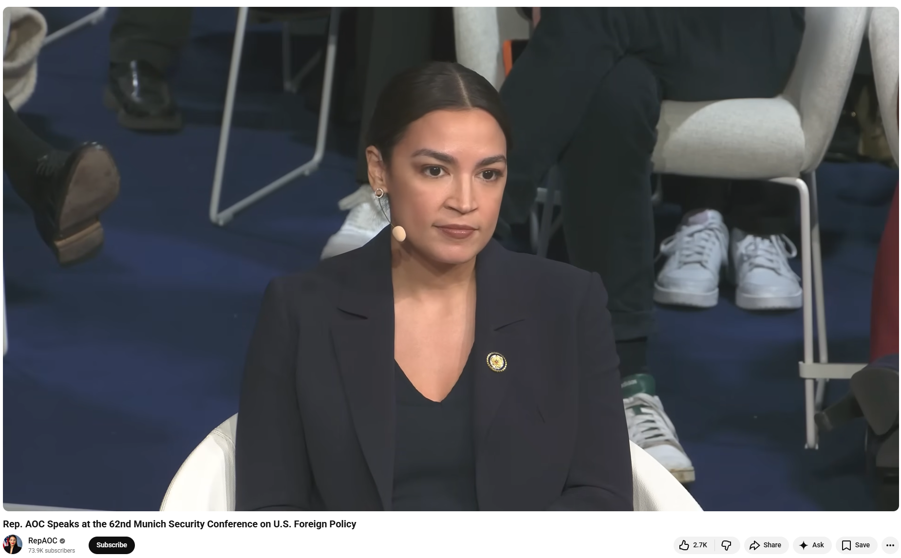 New York Rep. Alexandria Ocasio-Cortez recently made a relatively ordinary appearance at the Munich Security Conference.
